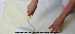 | 下一步是刷胶,将裁好的墙纸背面朝上铺开,用滚筒沾取调好的胶粉糊,涂刷与墙纸的背面.将刷好胶的墙纸进行对折渗透5分钟. |